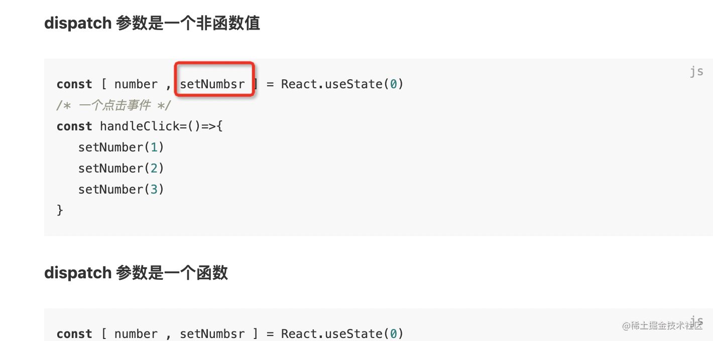- ② dispatch 改变 state 的函数,可以理解为推动函数组件渲染的渲染函数。