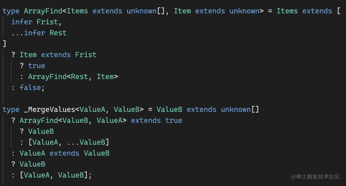 如果是 Java 的只支持泛型的类型系统可以做到么?明显不能。但是 TypeScript 的类型系统就可以,因为它可以对泛型(类型参数)做各种逻辑处理。