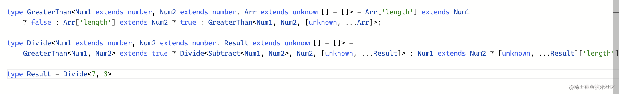 比如 3 是 [unknown, unknown, unknown] 的数组类型,提取出 2 个元素之后,剩下的数组再取 length 就是 1。
