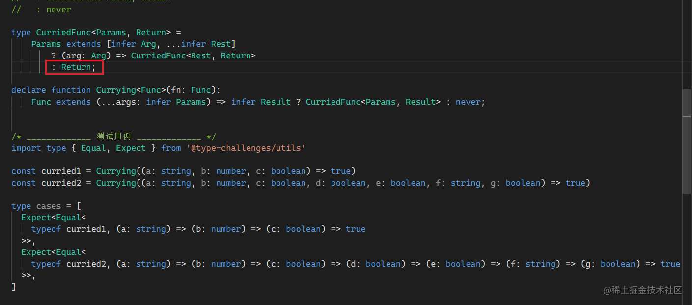 这样就递归提取出了 Params 中的所有的元素,递归构造出了柯里化后的函数类型。